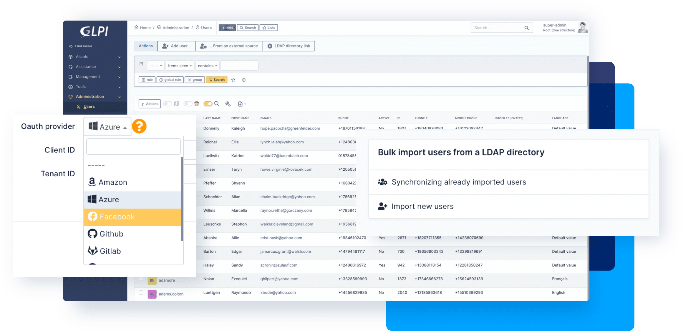 Prenez le contrôle des utilisateurs : définissez des entités, créez des profils et restreignez l’accès aux informations. Avec les règles GLPI, vous pouvez définir les rôles de chaque membre de l’annuaire et configurer le workflow pour le Helpdesk et l’Inventaire.